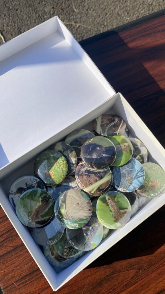 また、散策ラリーに参加したり、アンケートに答えていただくとお渡ししている緑地の生きものの写真で作った缶バッジが、お子さんだけでなく大人の方にも人気でした。